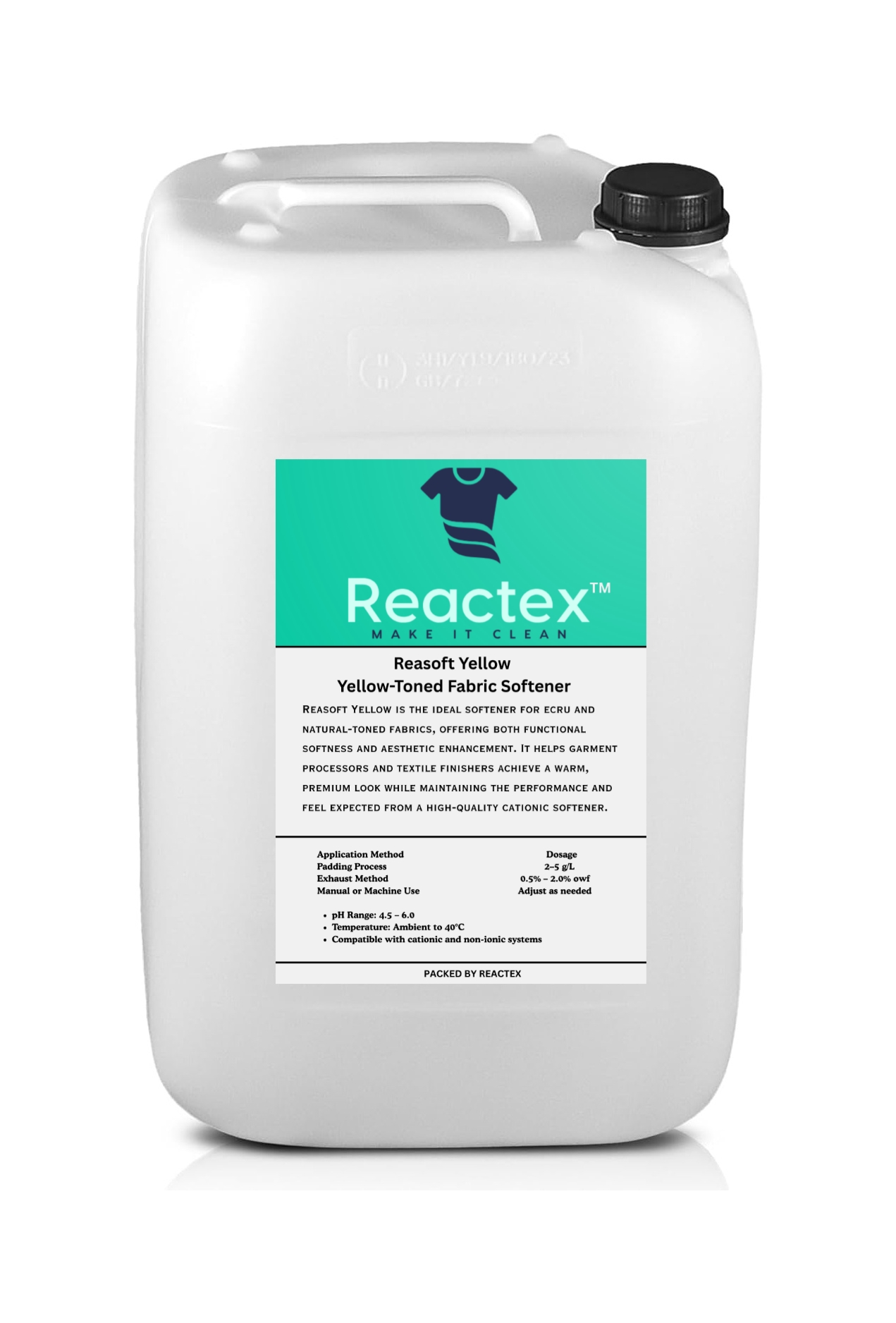 Reasoft Yellow is a specially formulated yellow-colored fabric softener designed to enhance the appearance, tone, and softness of ecru, off-white, and natural fabrics. This cationic softener not only provides a smooth and luxurious hand feel but also subtly enriches the natural beige/yellow hue of unbleached textiles, making it ideal for premium garments, home textiles, and natural-look collections.